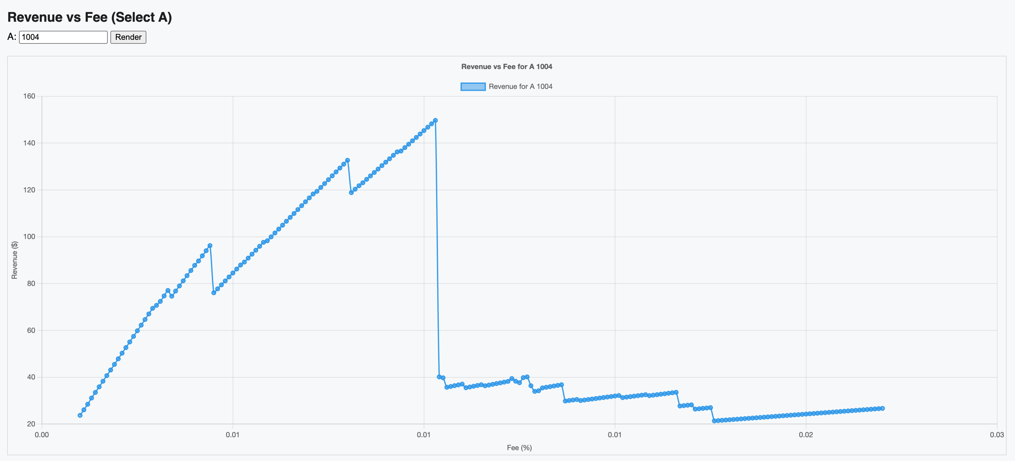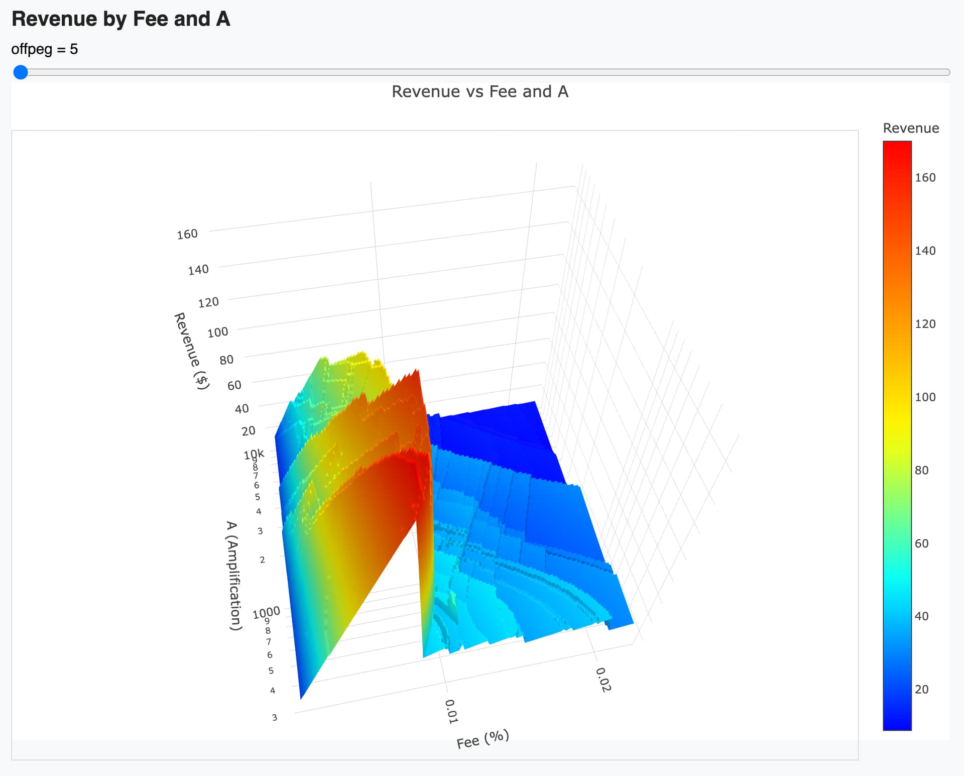 Approximately 3.5 million swaps got simulated across different configurations of A and fee levels. The results show that reducing the fee from 0.02% to 0.009% leads to: