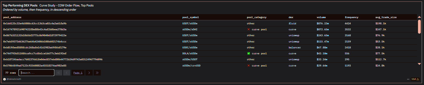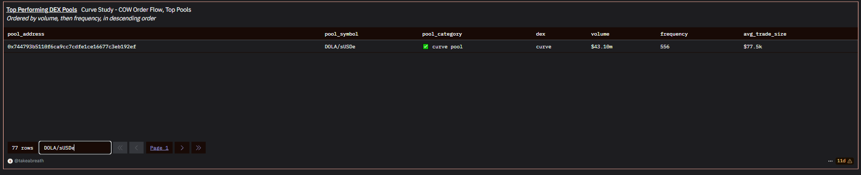 - Despite this depth, utilization (volume/TVL) underperforms, partly because DOLA is not a high-churn retail asset every day and because router paths for non-DOLA trades often traverse two DOLA pools, compounding fees.