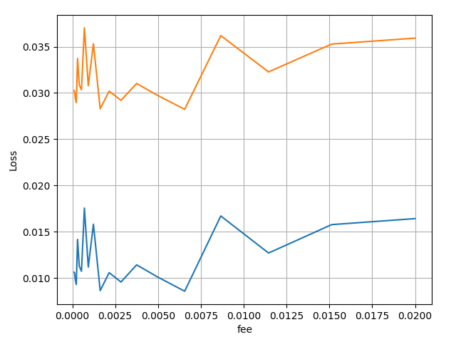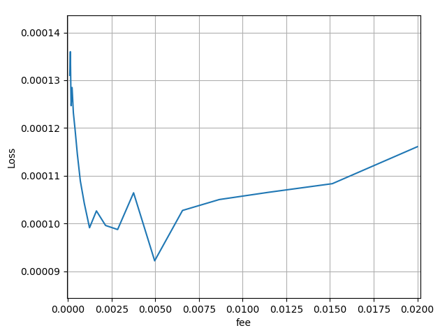 Noise is high, but it is clear that the fee can be in quite a wide range (from 0.1% to 0.6%). I propose fee = 0.2%.