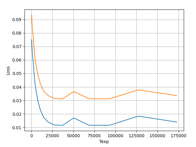 Optimal Thalf for minimal loss seems to be 30’000 seconds which corresponds to T_exp = 43280 s. Note that graph mislabels the axis as Texp - it’s actually Thalf.