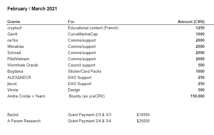 These grants are not just rewards for the work those people have done but also investments in them and the broader community to keep contributing in the future. In its DAO transition, we hope Curve can keep relying on its community like it has in the past few months and the entire team thank all the Curve grantees for their contributions.