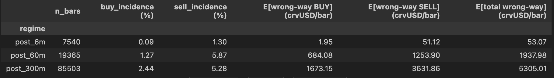 Note: The mechanical intuition here is that when crvUSD trades below peg, getting the PegKeeper pool to a balanced state with respect to its paired stablecoins requires either removing crvUSD from the pool or supplying more of the paired stablecoins.