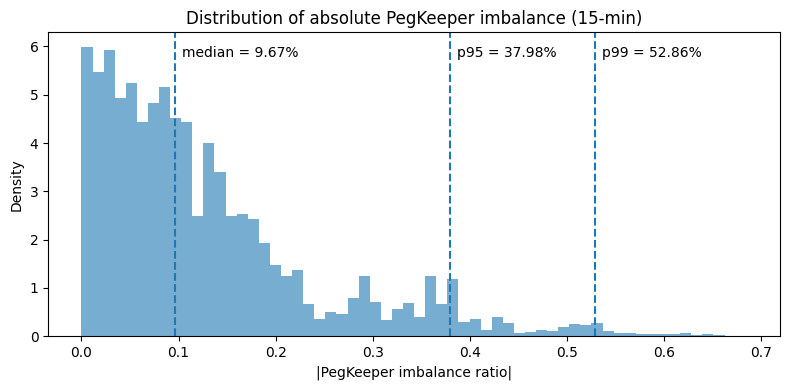 For this, we enhanced our dataset by merging reserve data of the respective PegKeeper pools, restricting the analysis to the common coverage window from 2025-07-24 01:28:23 UTC to 2025-11-18 00:00:47 UTC.