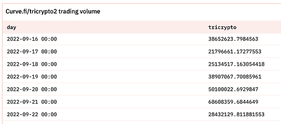 Curve has been averaging 170M$ of daily volume lately, with tricrypto2 representing over 20% of its volume on average. Because admin fees are proportional to volume, the tricrypto2 pool is a major provider of trading fees revenue for the Curve DAO (~225,000$ / week)