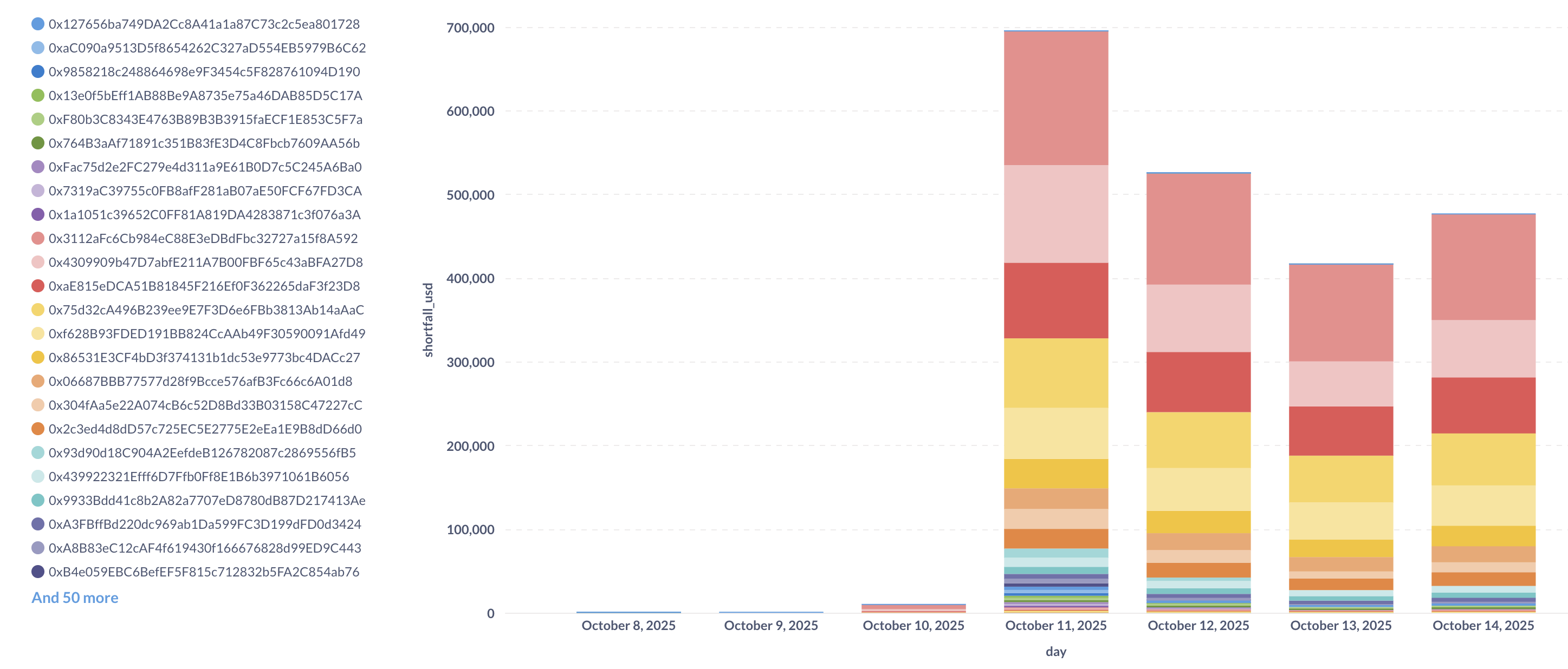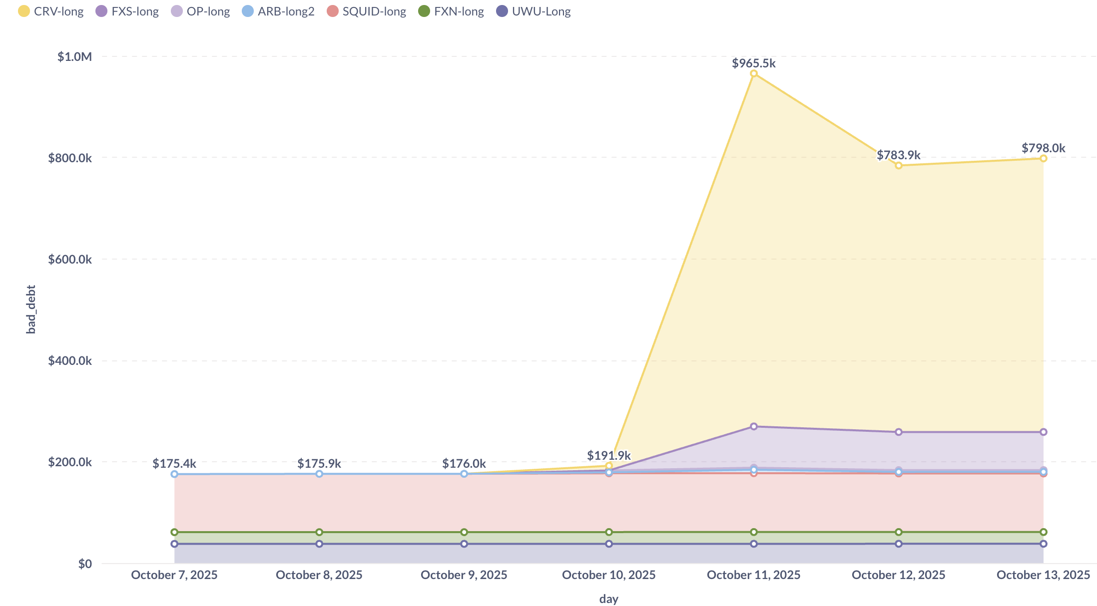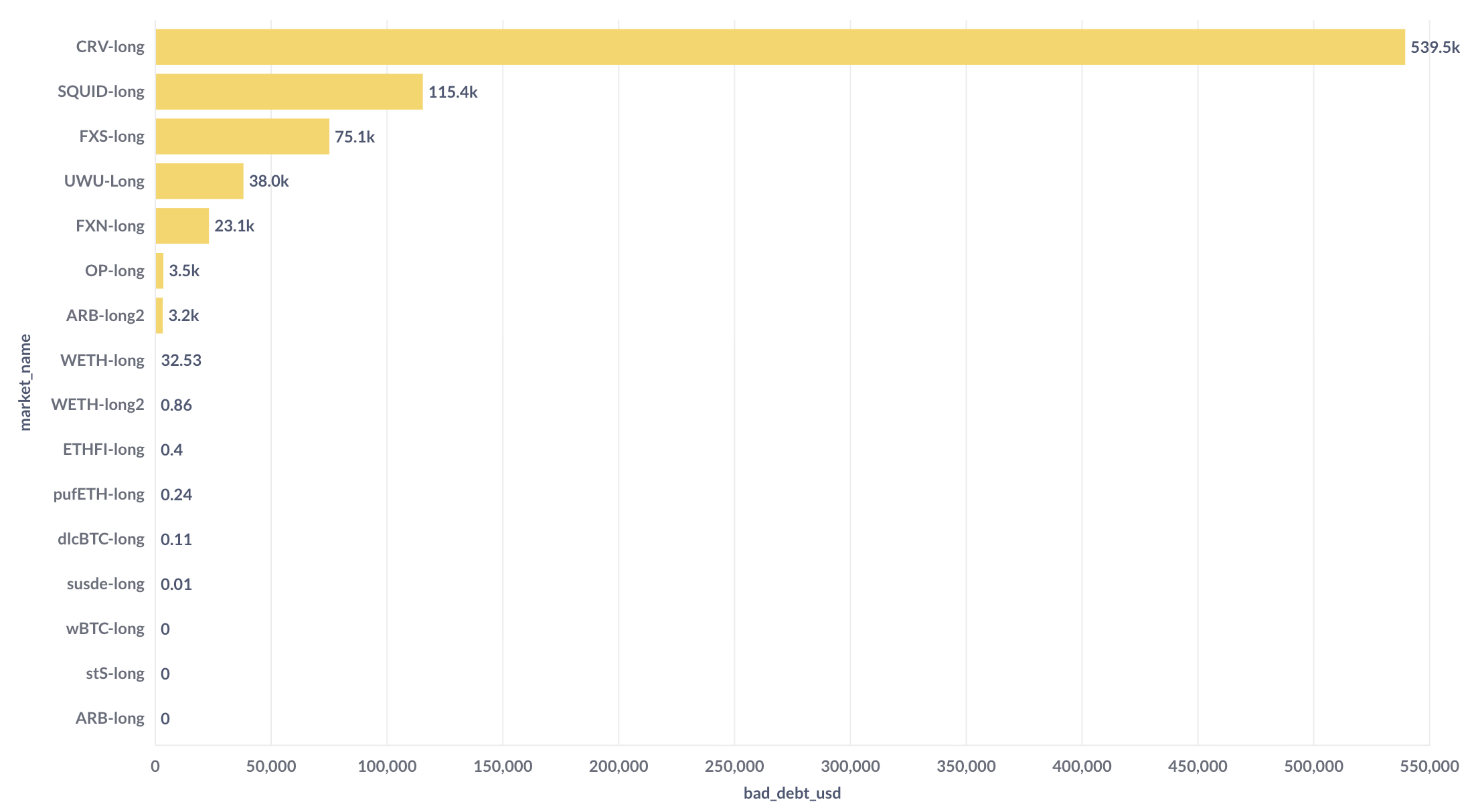 We see that 7 LlamaLend markets currently hold bad debt greater than $100: