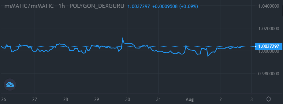 MAI has maintained its peg through recent market downturns. It’s max spread is 1% from peg, due to its USDC Swap feature used to mint MAI at a fixed rate.