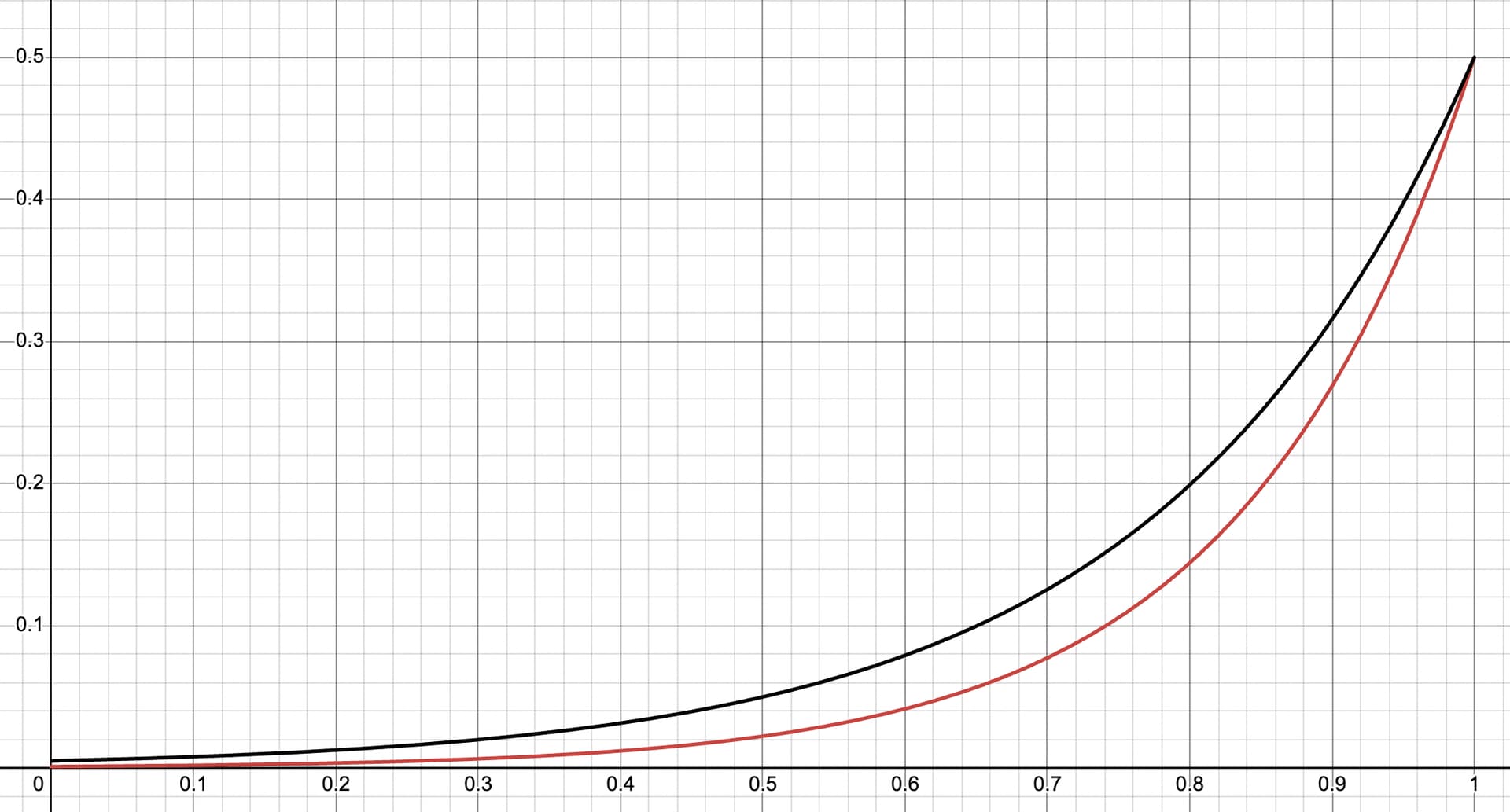 The black curve shows the current Semilog parameterization and the red line shows the proposed parameterization.
