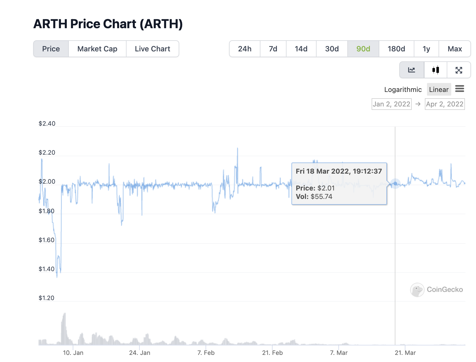 Market History: The ARTH.usd token has not experienced significant volatility or de-pegging due to its redeemability with the underlying collateral.