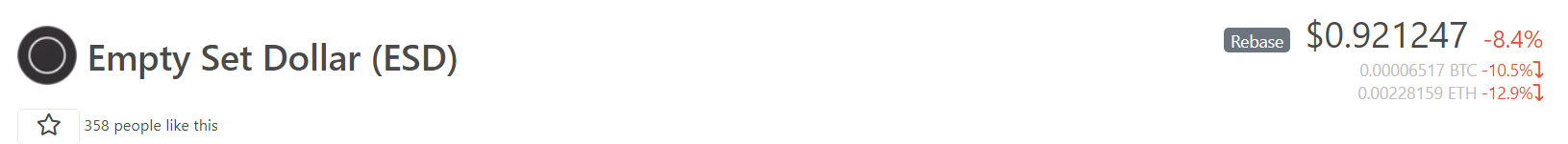 Over 90% of ESD tokens were staked to the DAO as of 11/3/2020.